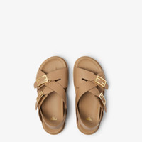 Triple-band flat cross-over slides with FF Baguette decorative buckles. Made of beige leather. Elastic detail on the back strap. Gold-finish metalware. Made in Italy Composition: 100% calf leather, inside: 100% calf leather Product Code: 8X8647NA7F0QB8