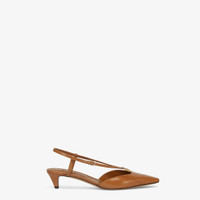 Slingbacks with square toe and straps that wrap around the foot. The metal FF detail, with a special design that includes a functional hinge in the center, makes them comfortable to walk in. Made of shiny beige eel leather. Tone-on-tone leather covered heel. Gold-finish metalware. Made in Italy Composition: 100% eel, inside:100% goat leather Product Code: 8J8580AOSHF0QB9