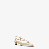 Slingbacks with square toe and straps that wrap around the foot. Embellished with a metal FF detail and featuring a special design that includes a functional hinge in the centre. Made of gold-colored metallic nappa leather. Tonal covered heel. Gold-finish metalware. Made in Italy Composition: 100% lamb leather, interior: 100% lamb leather Product Code: 8J8580VH6F0XEW