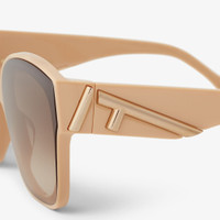 Square Fendi First eyeglasses in light pink acetate. Temples with oversize diagonal F motif in gold-colored metal. Brown gradient lenses. Made in Italy Composition: 100% acetate Product Code: FOA026V1PF1U7N Product Care: Wash your eyeglasses every day with warm water and a pH-neutral soap.Do not use alcohol, aggressive chemical products or disinfectant wipes and do not dry them with paper or other cloths that could scratch them or leave streaks.Dry with a clean microfiber cloth.After use, always keep your eyeglasses in their case.