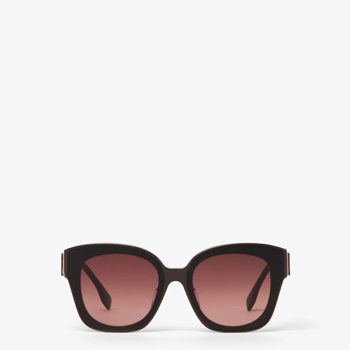 Square Fendi First eyeglasses in dark brown acetate. Temples with oversized diagonal F motif in Havana acetate, finished in gold-colored metal. Sienna brown gradient lenses. Made in Italy Composition: 100% acetate Product Code: FOA026V1PF1U7M Product Care: Wash your eyeglasses every day with warm water and a pH-neutral soap.Do not use alcohol, aggressive chemical products or disinfectant wipes and do not dry them with paper or other cloths that could scratch them or leave streaks.Dry with a clean microfiber cloth.After use, always keep your eyeglasses in their case.
