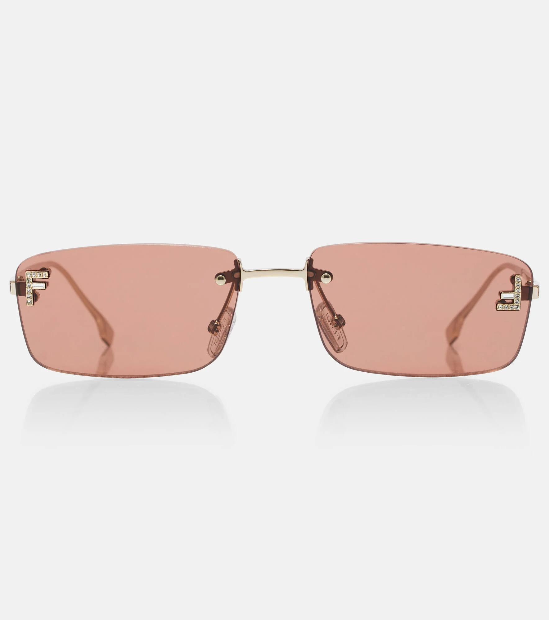 Complete your look with the Fendi First Crystal rectangular sunglasses by Fendi. The design features a rimless, gold-tone metal construction complete with the brand's iconic crystal micro-Fs on the lenses for a signature touch. Product Details - Frame material: metal - Frame color: gold - Lens filter category 1 - Lens color: brown - Made in Italy - Includes: case, cleaning cloth - The color of the case may vary - Item number: P01067288 Size & Fit - Lens width: 54mm-2.15" - Bridge size: 16mm-0.65" - Earpiece length: 135mm-5.3"