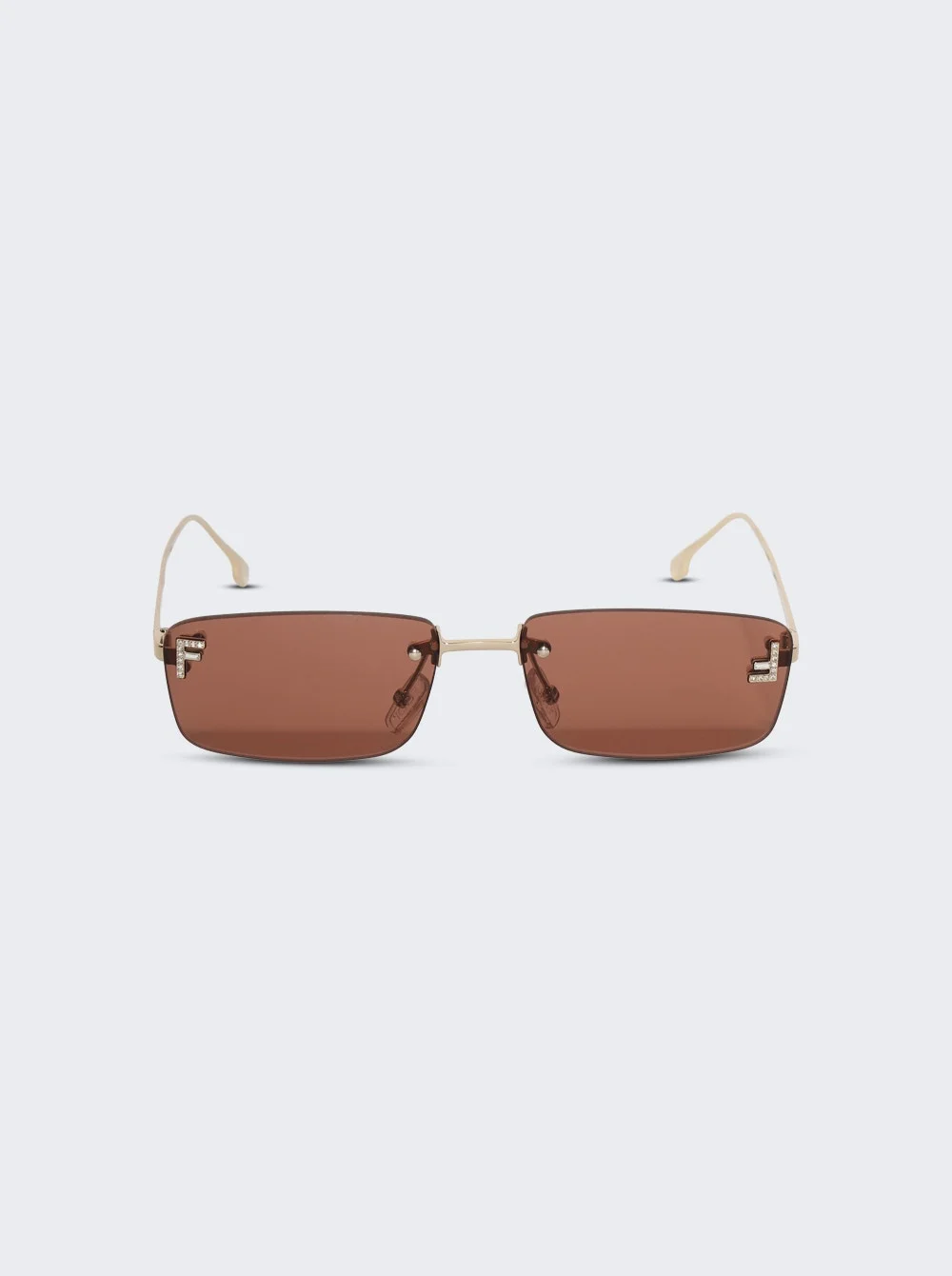 Details - Rimless rectangular sunglasses - Micro F in crystals on the lenses - Adjustable nose pads - Gold-tone metal frame, red lenses - 100% UVA/UVB protection Vendor Color Code: Brand Style: FE4172US@5432S Designer/Brand: FENDI