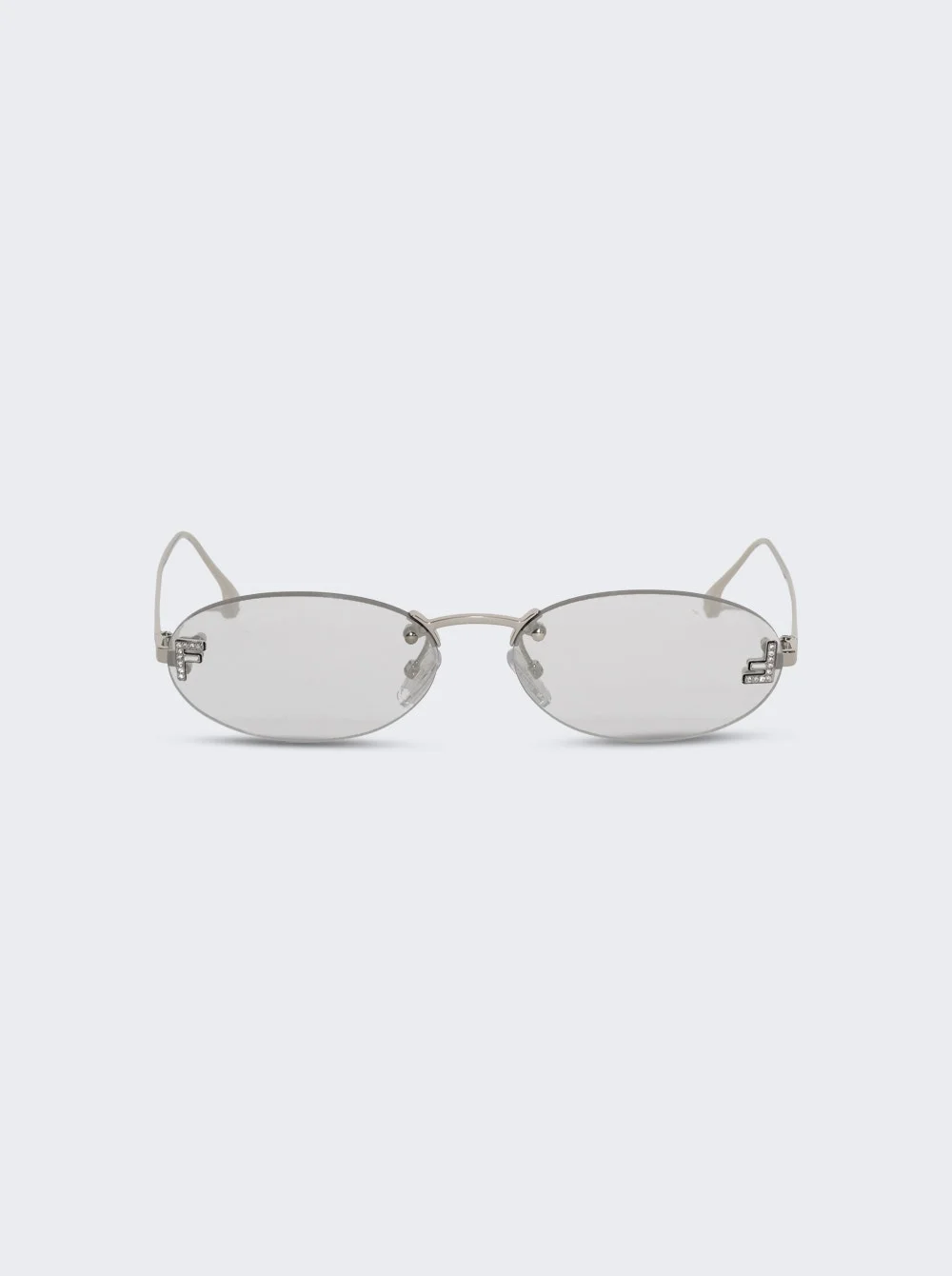 Details - Rimless oval sunglasses - Micro F in crystals on the lenses - Adjustable nose pads - Shiny palladium metal frame - Smoke mirror lenses - 100% UVA/UVB protection Vendor Color Code: Brand Style: FE4075US@5416C Designer/Brand: FENDI