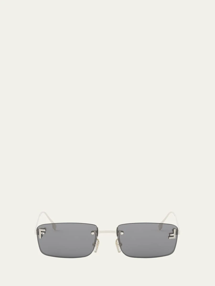 Fendi "Fendi First" rectangle sunglasses Features "F” logos on the lenses enriched with crystals Eye/bridge/temple (in mm): 54-16-135 Solid lenses Adjustable nose pads Thin, tapered arms Engraved logo at temples Metal/nylon/polyamide 100% UVA/UVB protection Made in Italy Online Inquiries: BGS21_D58T6| Store Inquiries: #5018981