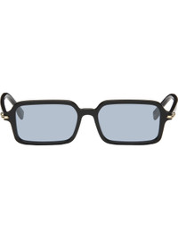 Rectangular acetate-frame sunglasses. · Blue lenses · 100% UVA/UVB protection, category 2 · Integrated nose pads · Studs and etched logo at temples · Includes pouch · Size: 54.16 140 Supplier color: Shiny black/Blue Acetate. Made in Italy 252693F005006
