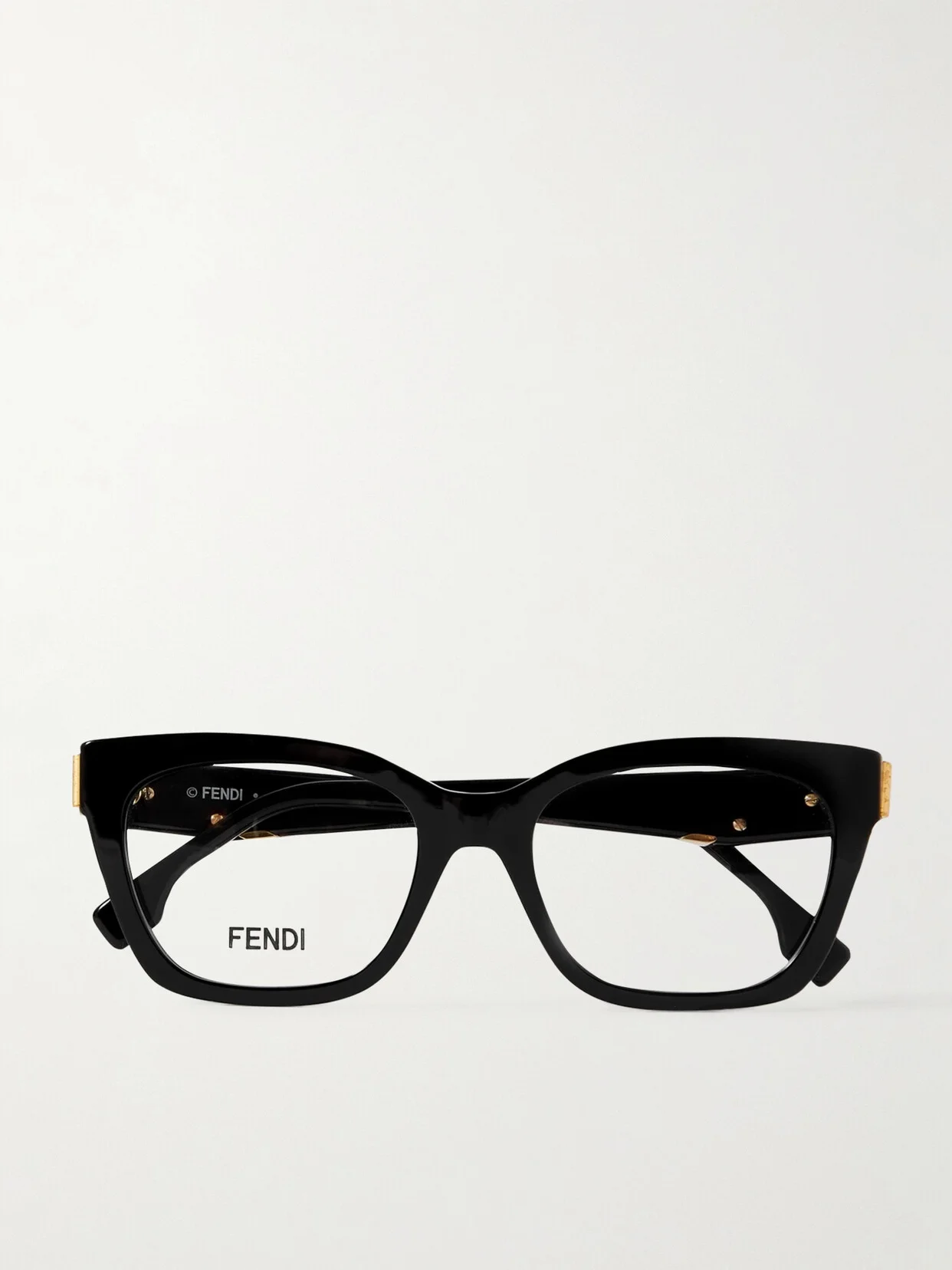Glasses are the perfect form of self-expression and there's a shape out there to suit every personality. FENDI Eyewear's pair is made from glossy black acetate with bold square frames and an asymmetric version of the brand's iconic 'F' motif at the temples.