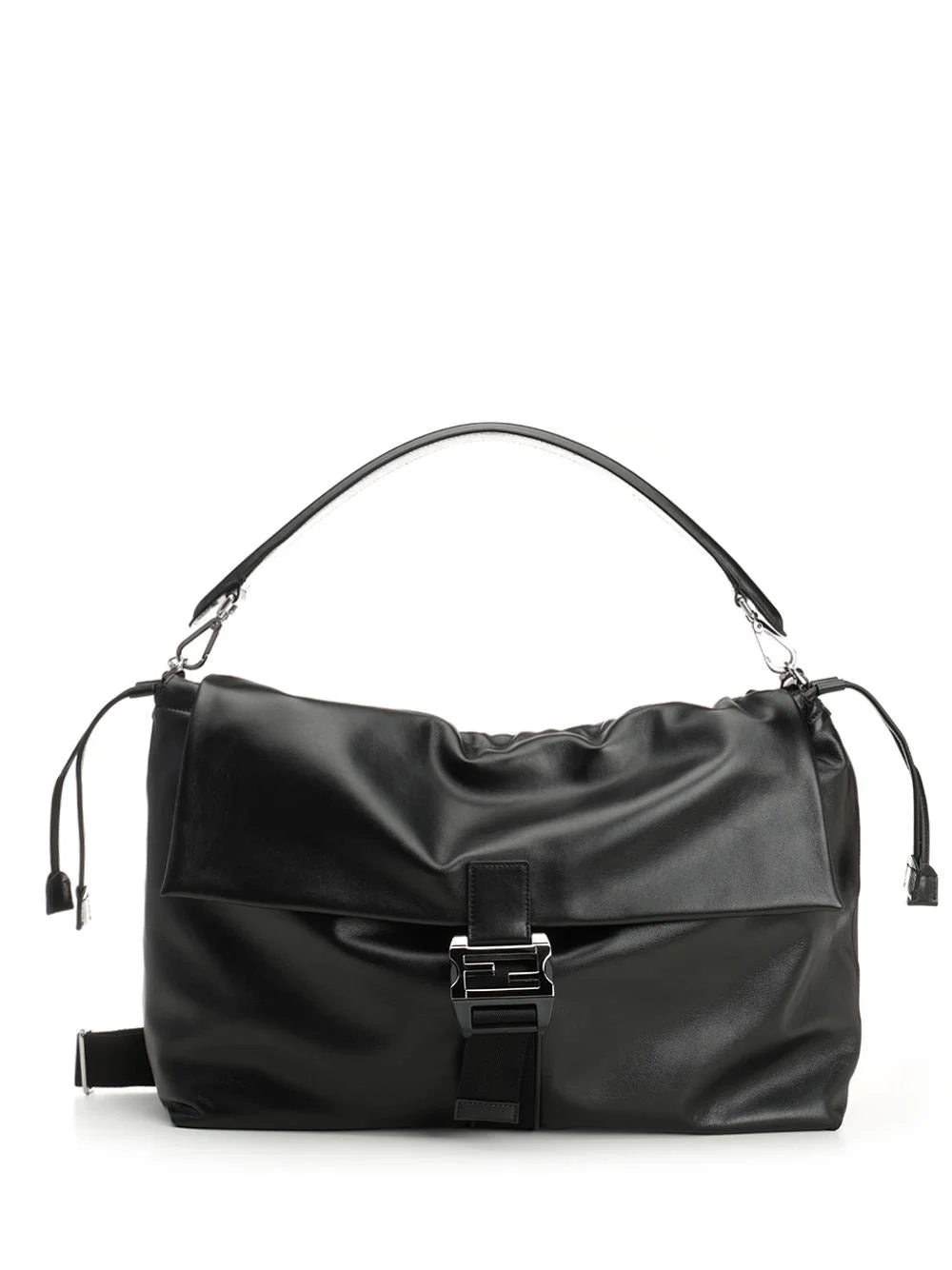 Large "Flux Messenger" bag in smooth leather by Fendi, flap with FF-shaped metal tuc closure and drawstring with tone-on-tone leather laces, large lined internal compartment, large enough to hold a 13" laptop or tablet, palladium-finish metal accessories, can be carried by hand, on the shoulder or cross-body with a removable leather handle and an adjustable and removable ribbon shoulder strap. W.47 X H.34 X D.13 cm 100%VIT+Interno:90%PL,10%PU Made in: IT SKU: 7VA665AV8BF0GXN Our Products Are 100% Genuine. In All Cases We Stand By The Authenticity Of Every Product Sold On Our Site. All sales are final and we only accept returns for quality issue. Buyer is responsible for any import tax/duty if applicable.