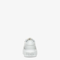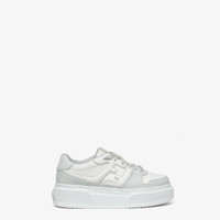 Fendi Match lace-up sneakers. Made of light gray leather with white leather inserts. Injection-molded FF appliqué on the sides and flat, maxi laces in white. 50 mm (2 inch) platform rubber sole with oversized, embossed Fendi lettering at the back. Made in Italy Composition: 100% calf leather, interior: 100% calf leather Product Code: 8E8571AOMNF1PYS