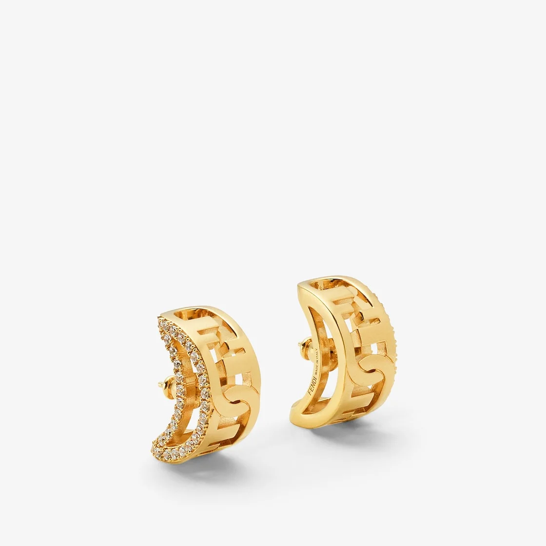 Crescent earrings with interlinked Fendi O'Lock motif. Made of metal with a gold finish. Embellished with inset natural crystals. Made in Italy Composition: 100% bronze, 100% synthetic stone Product Code: 8AL176ATEPF089U Product Care: The product you have purchased may be embellished with a precious metal top or varnish and may also feature appliques, gemstones (in various shades of the same color), crystals, plexiglass or resin. The mixture of materials and the special details give this product its unique character. To best maintain the product’s appearance over time, avoid contact with sea water, spa water, lacquers, perfumes, solvents, chemicals and abrasive materials. If necessary, clean with water and a neutral soap and/or polish with a dry microfiber cloth.