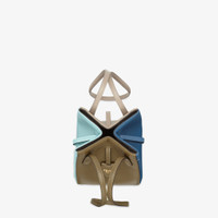 Mini Origami Bag. The style recalls the duality and creativity of Fendi with an innovative and transformable design: the ingenious closure with eight magnets means the bag can be folded, origami-style, transforming it from a bucket bag, when the magnets come together in the middle with a magic clasp, into a shopper by gently pulling the leather ties on the short shoulder straps on each side. Made of full-grain calfskin in four colors: green, blue, light blue and dove gray. It comes with a key case charm with the words “Fendi Roma” in metal. Lined inner compartment and gold-finish metalware. It can be carried by hand or worn on the shoulder thanks to the two calfskin handles. Made in Italy Composition: 100% calfskin, inside: 60% polyamide, 40% polyurethane Product Code: 8BS083AOVLF1Q5O