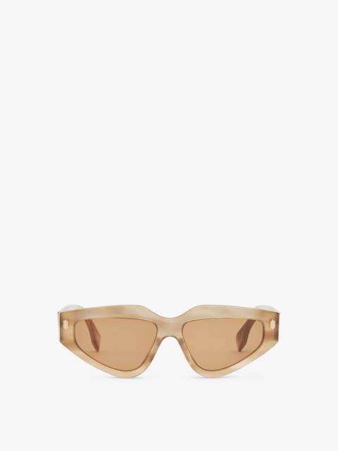 Fendi Roma geometric cat-eye glasses in beige acetate. Temples with visible metal core with laser-etched FF motif. Gold finish Fendi Roma logo on the sides. Blue lenses. Made in Italy Composition: 100% plastic Product Code: FOL108V1PF1RRU Product Care: Wash your eyeglasses every day with warm water and a pH-neutral soap.Do not use alcohol, aggressive chemical products or disinfectant wipes and do not dry them with paper or other cloths that could scratch them or leave streaks.Dry with a clean microfiber cloth.After use, always keep your eyeglasses in their case.
