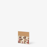 Fendi Roma card holder with central compartment and six card slots. Made of fabric with the iconic multicolor FF motif and beige leather. Gold-finish metalware. Made in Italy Composition: 56% polyurethane, 22% cotton, 22% polyester, inside: 100% calf leather, 50% cotton, 42% polyamide, 8% resins Product Code: 8M0445AV1YF1TVK