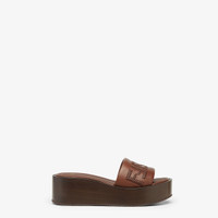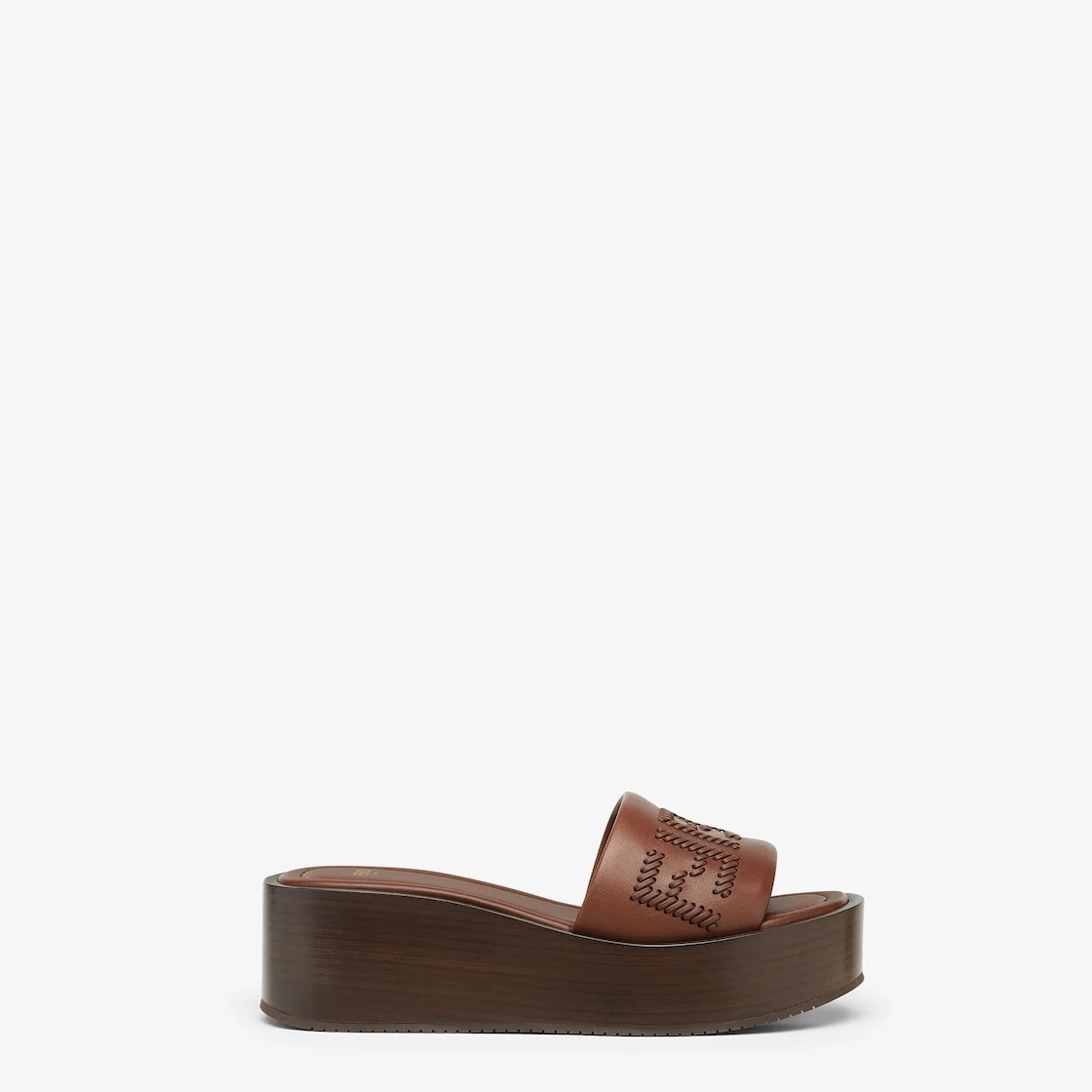 Wide-band slides with a platform sole. Made of dark brown leather with tone-on-tone leather threading that depicts the iconic FF motif. Each pair requires two hours of craftsmanship. Made in Italy Composition: 100% calf leather, inside: 100% calf leather Product Code: 8R8692ATSWF1STJ