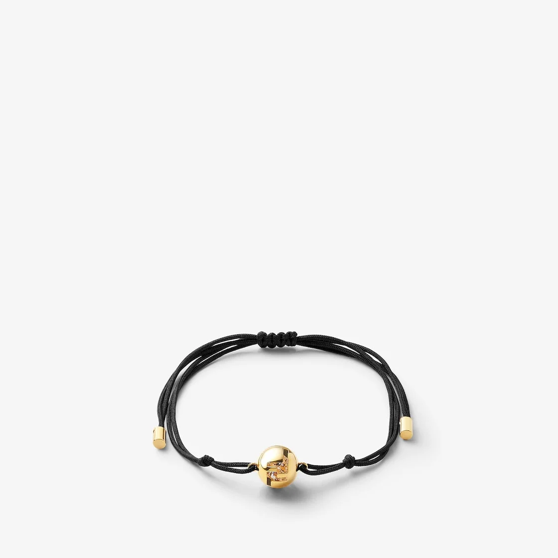 Chain bracelet with Fendi Sphera element and inserted crystal. Adjustable knot closure. Made of black braided cord and gold-colored metal. Made in Italy Composition: 100% brass, 100% polyester, 100% syntheticstone Product Code: 8AL161ATVZF1UGB Product Care: The product you have purchased may be embellished with a precious metal top or varnish and may also feature appliques, gemstones (in various shades of the same color), crystals, plexiglass or resin. The mixture of materials and the special details give this product its unique character. To best maintain the product’s appearance over time, avoid contact with sea water, spa water, lacquers, perfumes, solvents, chemicals and abrasive materials. If necessary, clean with water and a neutral soap and/or polish with a dry microfiber cloth.