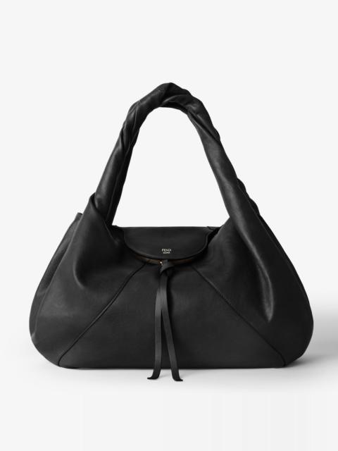 Large Fendi Spy Bag, a contemporary reinterpretation of a famous Fendi It bag presented in the Spring Summer 2005 Fashion Show, distinguished by its unique and unmistakable design. The name is inspired by the bag’s features, which include a secret pocket hidden in the flap that can be opened with a small button. An expression of fine craftsmanship, it features distinctive twisted handles that embellish the silhouette. Made of soft beige shearling. The round flap closure conceals a coin pocket and is trimmed in metal and has a knotted strap in tone-on-tone leather. FENDI Roma lettering in metal. Featuring a tone-on-tone suede-lined internal compartment with a cardholder pocket, ring for attaching charms or key rings and gold-finish metalware. It can be carried in the hand or worn over the shoulder thanks to the twisted handles. Made in Italy Composition: 100% sheep fur, inside: 100% calf leather Product Code: 8BR839AYCUF0NGA