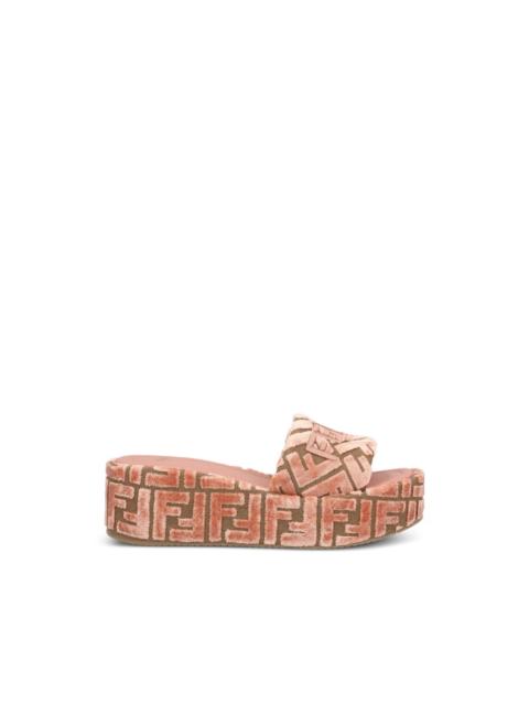 60mm Sunshine FF-jacquard platform sandals Highlights - Pink - Platform sole - Ff jacquard pattern - Embroidered logo - Open toe - Slide design Made in Italy Composition Outer: Fabric 100% Sole: Rubber 100% Lining: Fabric 100% SIZE & FIT Measurement HEEL 2.36 in(6 cm)