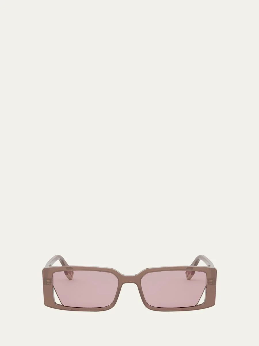 Fendi "FE401641" rectangle sunglasses in acetate Eye/bridge/temple (in mm): 32.6-16-145 Solid lenses Saddle nose bridge Logo at temples Thin, tapered arms 100% UVA/UVB protection Made in Italy Proposition 65 warning for California residents Online Inquiries: BGS21_D552T| Store Inquiries: #4972647