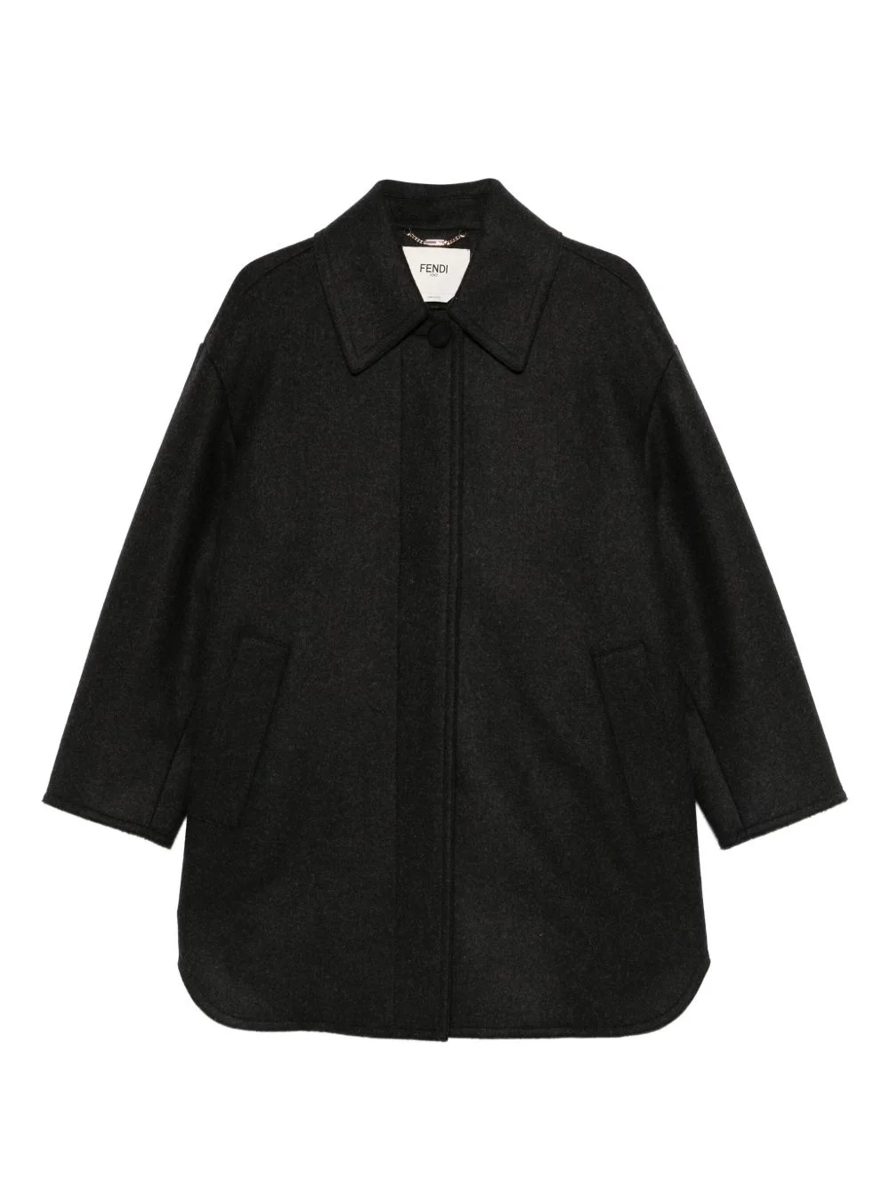 felted-finish coat Highlights - Black - Welt pockets - Long sleeves - Curved hem Made in Italy Composition Lining: Viscose 100% Outer: Virgin Wool 100% Washing instructions Dry Clean Only