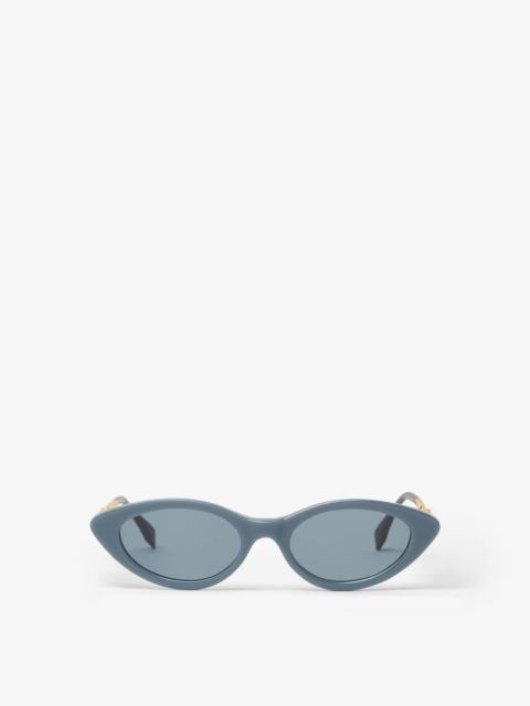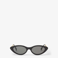Fendigraphy sunglasses with elongated cat-eye front in black acetate. Large gold-color metal temples, decorated with three-dimensional Fendi Roma lettering and acetate tips matching the front. Smoke gray lenses. Made in Italy Composition: 100% plastic, 100% metal Product Code: FOL137V1WF1RVS Product Care: Wash your eyeglasses every day with warm water and a pH-neutral soap.Do not use alcohol, aggressive chemical products or disinfectant wipes and do not dry them with paper or other fabrics that could scratch them or leave streaks.Dry with a clean microfiber cloth.After use, always keep your eyeglasses in their case.