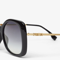 Fendigraphy sunglasses with oversize butterfly-shaped black acetate front. Gold-color metal tubular temples, decorated with three-dimensional Fendi Roma lettering and tone-on-tone acetate tips. Dark blue gradient lenses. Made in Italy Composition: 100% plastic, 100% metal Product Code: FOL136V1WF1VQ9 Product Care: Wash your eyeglasses every day with warm water and a pH-neutral soap.Do not use alcohol, aggressive chemical products or disinfectant wipes and do not dry them with paper or other fabrics that could scratch them or leave streaks.Dry with a clean microfiber cloth.After use, always keep your eyeglasses in their case.