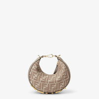 Mini Fendigraphy hobo bag with a contemporary look and bold details. Made of denim-effect FF jacquard in shades of dove gray, decorated with vintage gold metal FENDI lettering on the base, visible when the bag is worn. Zipper closure with a lined internal compartment, gold-finish metalware. It can be carried by hand by closing the bag with the clip or worn on the shoulder or cross-body using the adjustable, detachable dove gray leather shoulder strap inserted inside the side attachment points. Holds a 6.2-inch smartphone, Mini Trifold card holder or wallet, keys and lipstick. Made in Italy Composition: 78% cotton, 13% polyester, 9% polyamide, 100% calf leather, inside: 63% cotton, 34% polyester, 3% acrylic Product Code: 8BS081AUPXF1SNX