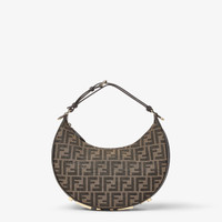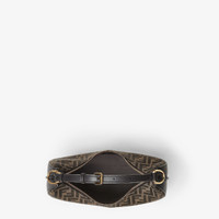 Small hobo bag made of brown FF jacquard motif fabric, decorated with vintage gold metal FENDI lettering visible when wearing the bag under the arm. Zipper closure with fabric-lined internal compartment, gold-finish metalware. Can be worn under the arm or cross-body thanks to the adjustable, detachable handle and the hooks that allow a shoulder strap to be attached. Made in Italy Measurements: - Height : 24.5 cm - Depth : 10 cm - Width : 29 cm - Weight : 1.11 kg Composition: 27% Polyester, 27% Polyamide, 27% Polyurethane, 15% Cotton, 4% Resin, 100% Calfskin, interior: 63% Cotton, 34% Polyester, 3% Acrylic Product Code: 8BR798ALP3F1I02
