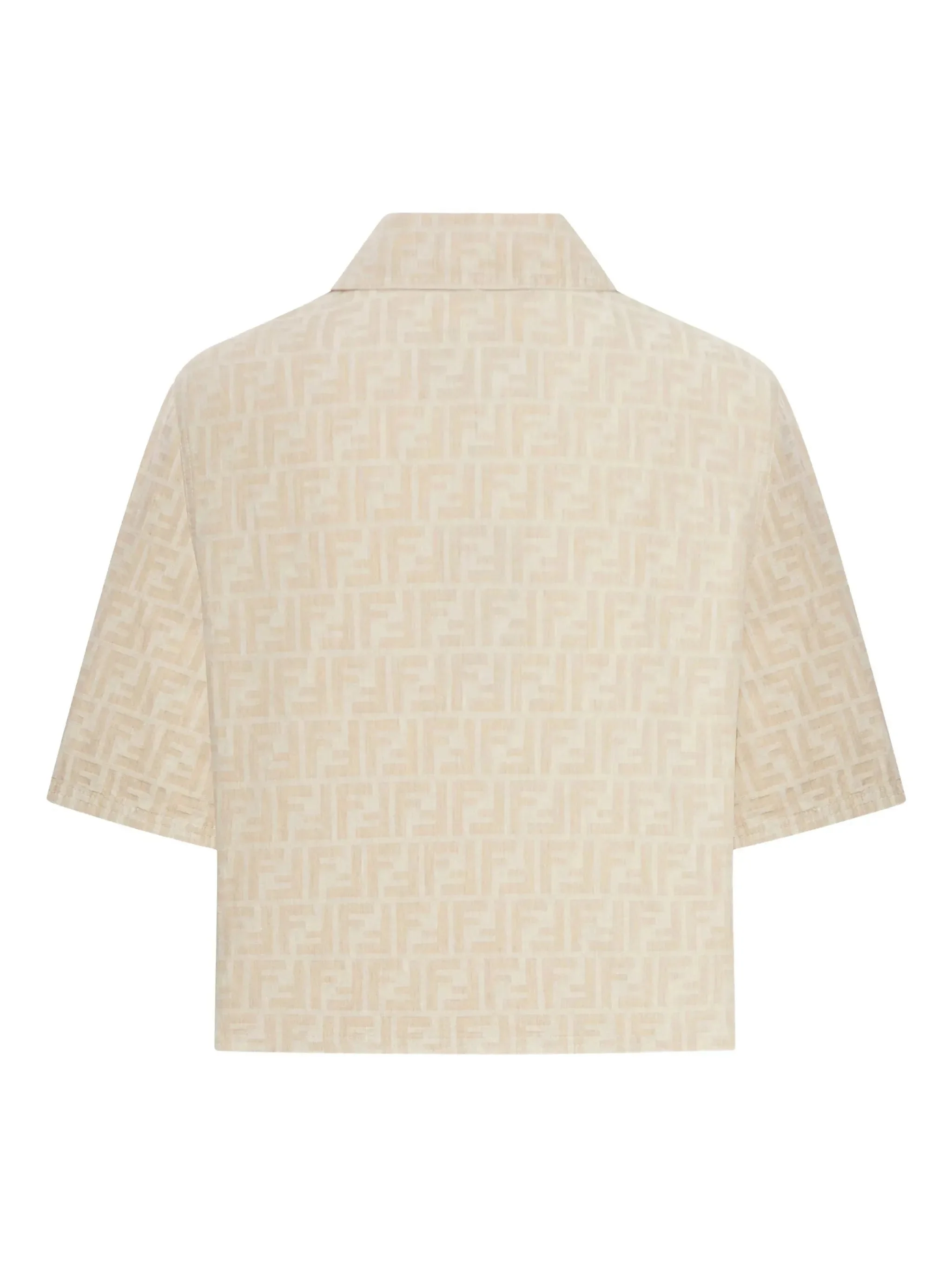 beige FF motif zip front short sleeves collared neckline - Color: BROWN - Made in: Italy - Designer Style ID: ASMF FLF790 F1SAZ Composition and care Cotton: 74.0%, Linen/flax: 26.0%