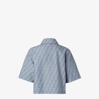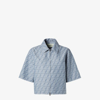 Cropped jacket with shirt collar and short sleeves. Side pockets. Double-slider metal zipper front closure. Unlined. Made of blue FF chambray denim. Palladium-finish metalware. Made in Italy Composition: 74% cotton, 26% linen Size worn: 38 IT. The model is 179 cm tall Product Code: FLF790ASMFF1SAT