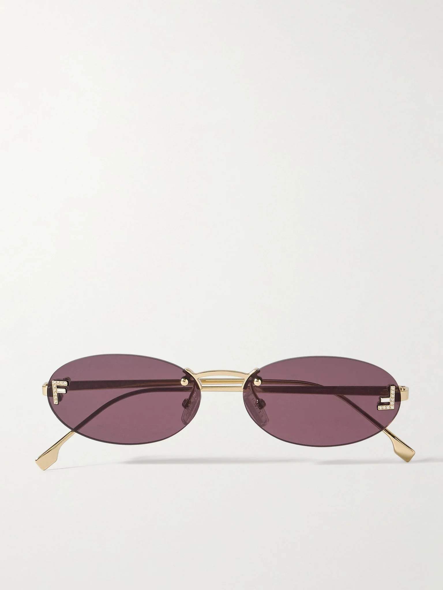 FENDI Eyewear's sunglasses have a rimless oval-frame shape inspired by those popular in the '90s and early aughts. They're made from gold-tone metal and feature tiny crystal-embellished 'F' emblems at the temples. Details & Care - Gold-tone metal - Come with a case - 100% UV protection