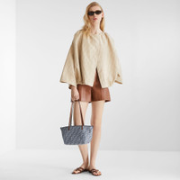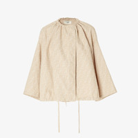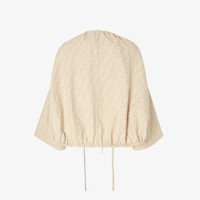 Relaxed-fit jacket with wide low-set sleeves. Crew-neck and gathered edges with drawstring. Unlined. Made of beige FF chambray denim. Made in Italy Composition: 74% cotton, 26% linen Size worn: 38 IT. The model is 179 cm tall Product Code: FLF825ASMFF1SAZ