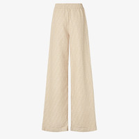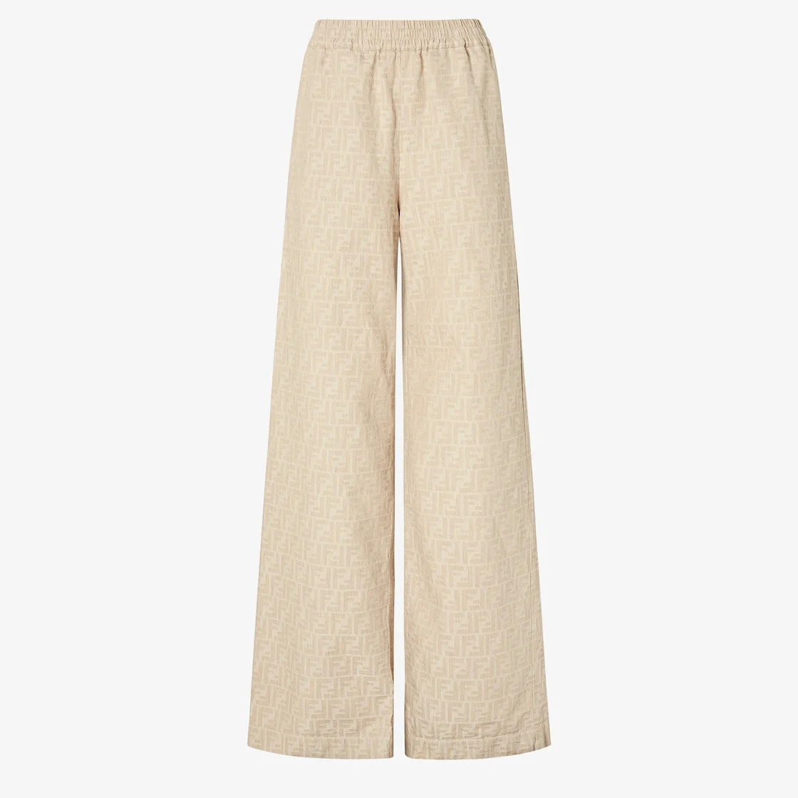 Long pants with wide leg and elastic waist. Side pockets. Made of beige FF chambray denim. Made in Italy Composition: 74% cotton, 26% linen Size worn: 38 IT. The model is 182 cm tall Product Code: FLP869ASMFF1SAZ