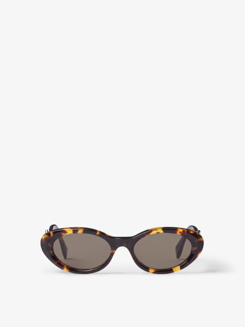 Oval FF Diamonds eyeglasses in white opalescent acetate. Temples with functional FF Diamonds hinges in gold-colored metal. Brown lenses. Made in Italy Composition: 100% acetate Product Code: FOL092V1PF1RVM Product Care: Wash your eyeglasses every day with warm water and a pH-neutral soap.Do not use alcohol, aggressive chemical products or disinfectant wipes and do not dry them with paper or other cloths that could scratch them or leave streaks.Dry with a clean microfiber cloth.After use, always keep your eyeglasses in their case.