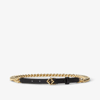 Chain belt embellished with black leather insert. Fastened with FF Diamonds buckle and leather loop. Gold-finish metalware. Made in Italy Composition: 100% brass, 100% calfskin Product Code: 8C0766AS87F0RNG