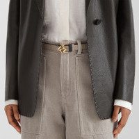 Reversible belt with loop and diagonal FF stud buckle. One side is black leather and the other beige leather with tone-on-tone embossed FF pattern. Gold-finish metalware. Made in Italy Measurements: - Width : 2 cm Composition: 100% calf leather, back: 100% calf leather Product Code: 8C0687ANH8F0E6E