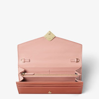 FF Diamonds continental wallet with geometrically shaped flap, diagonal FF logo and fine, removable chain strap. The interior features a wallet layout with two gusseted compartments, a zipper pocket, two flat pockets and ten card slots. Made of smooth calfskin and full-grain leather in pink and sienna brown. Gold-finish metalware. Made in Italy Composition: 100% calf leather, inside: 50% cotton, 42% polyamide, 8% resins Product Code: 8M0365ALV4F1TWI