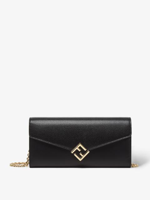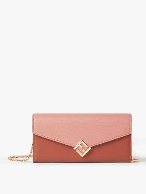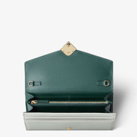 FF Diamonds continental wallet with geometrically shaped flap, diagonal FF logo and fine, removable chain strap. The interior features a wallet layout with two gusseted compartments, a zipper pocket, two flat pockets and ten card slots. Made of smooth calfskin and full-grain leather in matcha green and dark green. Gold-finish metalware. Made in Italy Composition: 100% calf leather, inside: 50% cotton, 42% polyamide, 8% resins Product Code: 8M0365ALV4F1TWG