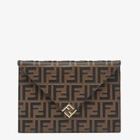 Large, slim pouch with geometric flap and diagonal FF logo. Snap closure. Made of brown leather with a black embossed FF print. Gold-finish metalware. Made in Italy Composition: 100% calfskin, inside: 100% calfskin Product Code: 8N0152ADYMF13VK