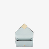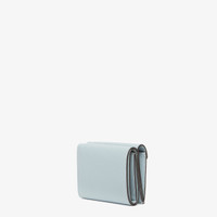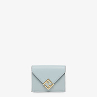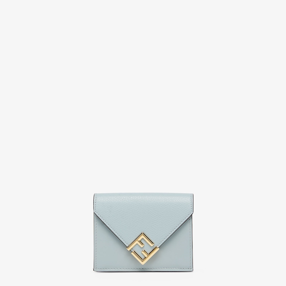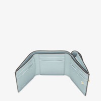 FF Diamonds medium tri-fold wallet. Divided into six card slots, a bill compartment and a coin pocket with a snap button. Made of light blue calfskin. Gold-finish metalware. Made in Italy Composition: 100% calfskin, inside: 100% calfskin Product Code: 8M0480ALV4F1NPU