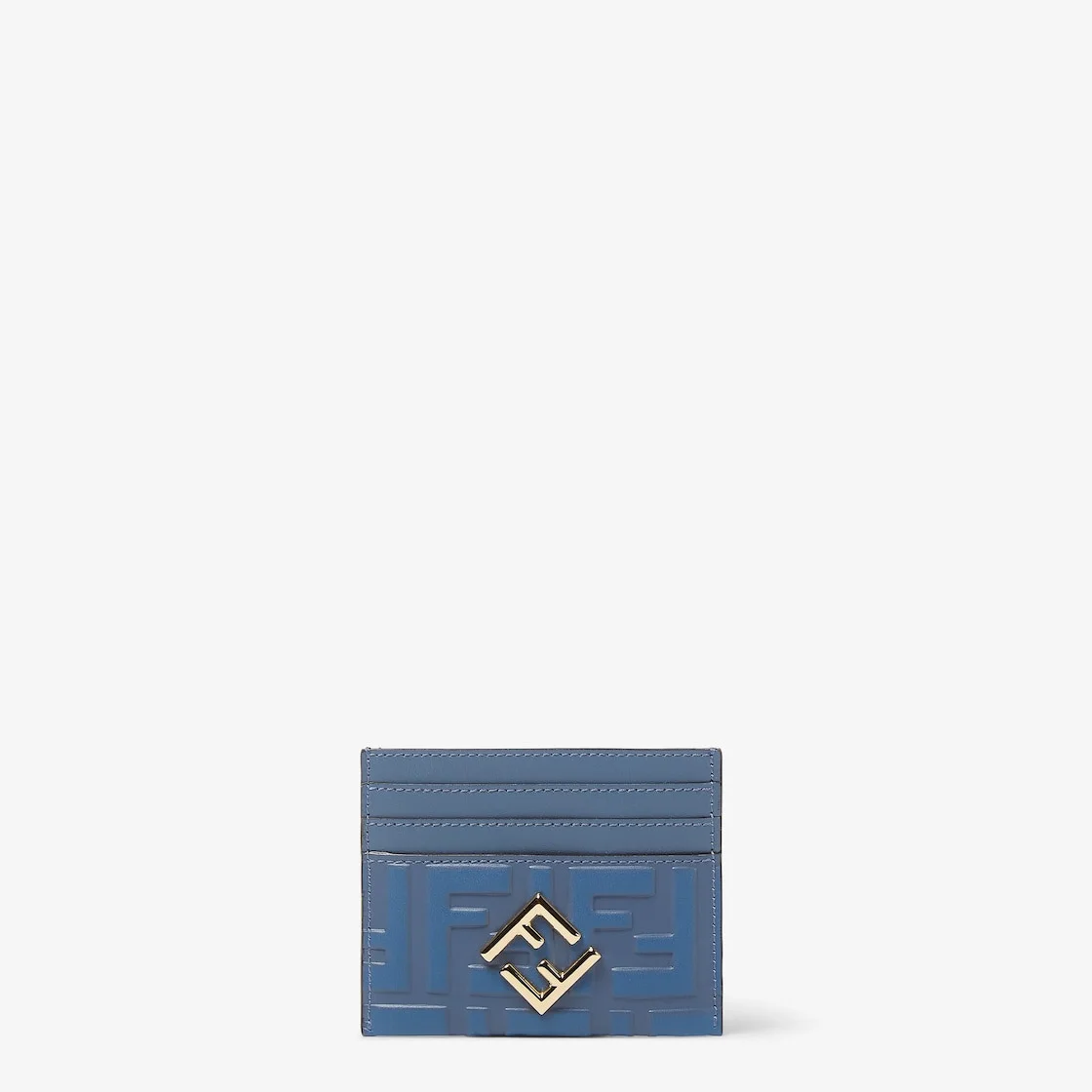 FF Diamonds card case with diagonal FF logo, central compartment and six card slots. Made of calfskin with the iconic embossed FF motif in blue. Gold-finish metalware. Made in Italy Composition: 100% calf leather, inside: 100% sheep leather Product Code: 8M0445AS42F1SXT