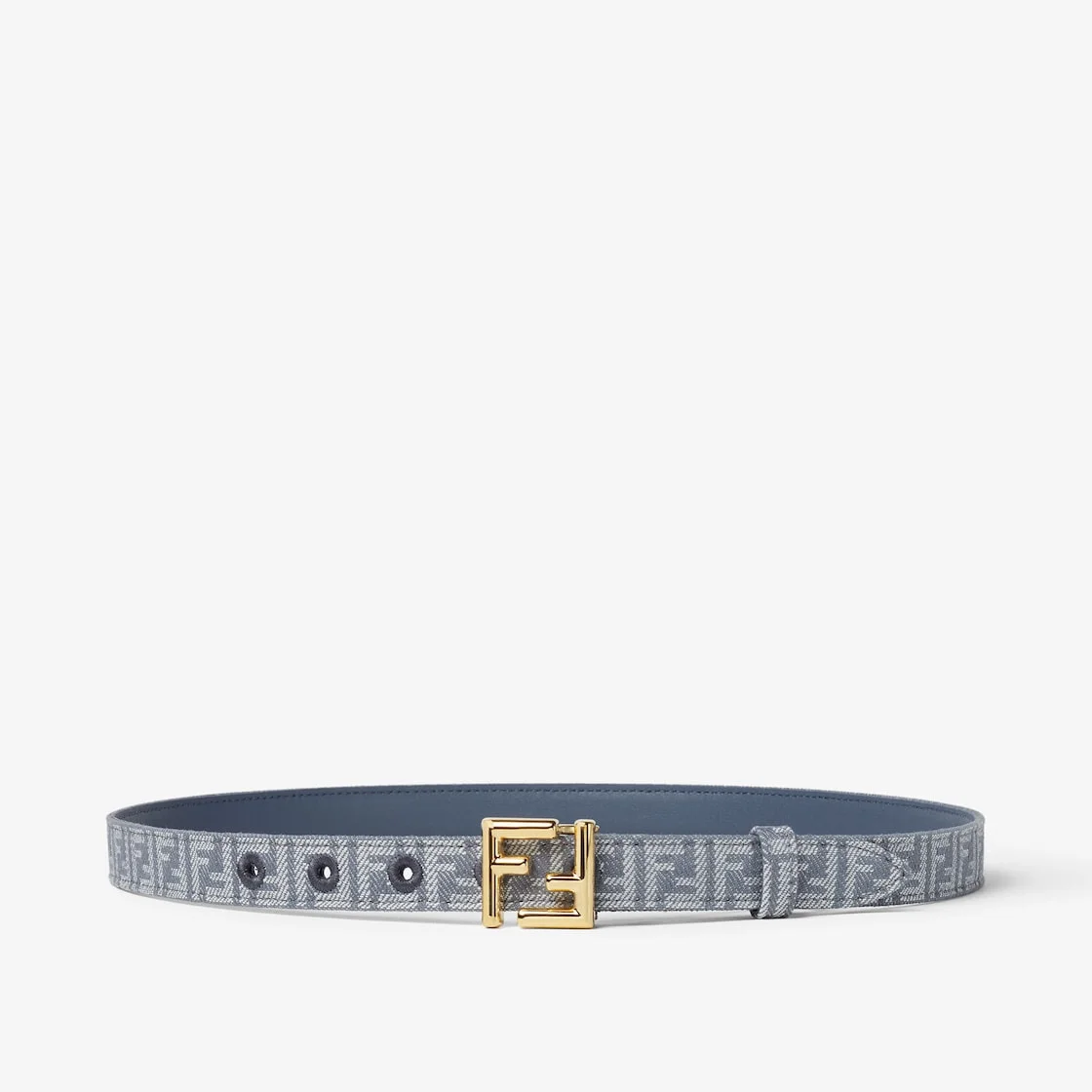Thin belt with loop and FF stud buckle. Made of denim with iconic blue FF motif. Leather lining. Metal accessories in a vintage-gold finish. Made in Italy Composition: 66% cotton, 34% polyester, inside: 100% calf leather Product Code: 8C0648AV4QF199A