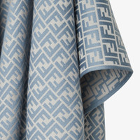 Lightweight poncho with enveloping volumes made in a luxurious wool and silk blend. The jacquard reproduces the iconic FF pattern in shades of denim blue. Made in Italy Composition: 70% wool, 30% silk Product Code: FXX782AQ8GF0RU7