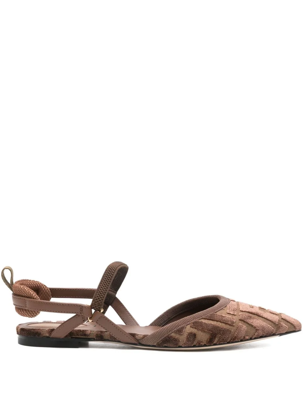 FF-patterned slingback pumps Highlights - Brown - Ff pattern - Pointed toe - Slingback strap - Elasticated ankle strap Imported Composition Outer: Fabric 100%, Velvet 100% Lining: Leather 100% Sole: Calf Leather 100% SIZE & FIT Measurement HEEL 21.65 in(55 cm)