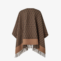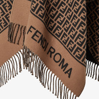 Poncho made of wool and cashmere with an all-over black and tobacco jacquard FF motif. Embellished with the Fendi Roma logo on a contrasting color background with fringes. Made in Italy Composition: 80% fleece wool, 20% cashmere Product Code: FXX723AQCWF0QE1