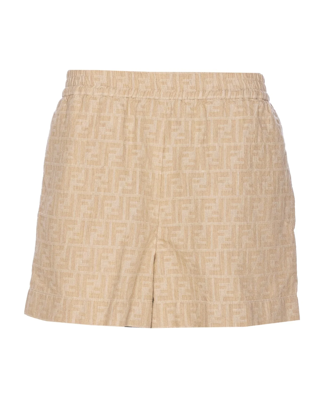 Fendi beige shorts, FF logo, elasticized on waist, pockets Composition: 74% Cotton, 26% Linen Made in: Italy Model number: FLP870ASMF