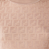 Long crew-neck dress with a fitted silhouette and short sleeves. Made of cotton and viscose with the iconic micro FF motif all over in light pink. Finished with small side slits on and rib-knit hem. Made in Italy Composition: 54% cotton, 46% viscose Product Code: FZDD61AUZRF1SAU