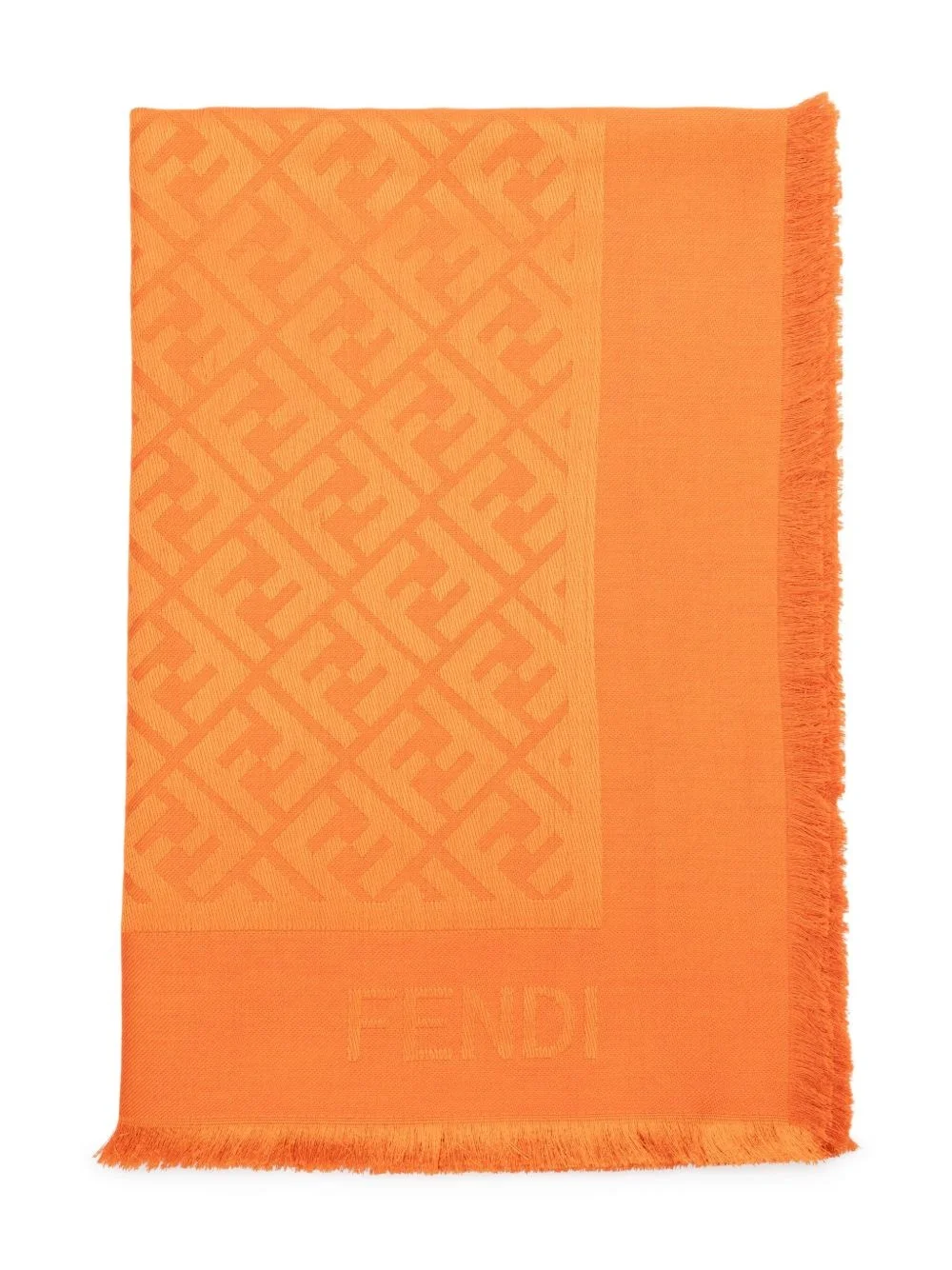 FF-motif shawl Highlights - Carrot orange - Jacquard g monogram motif - Fringed edge - Rectangle shape - Wraparound style Made in Italy Composition Silk 60%, Wool 40% SIZE & FIT Measurement LENGTH 55.11 in(140 cm) WIDTH 55.11 in(140 cm)