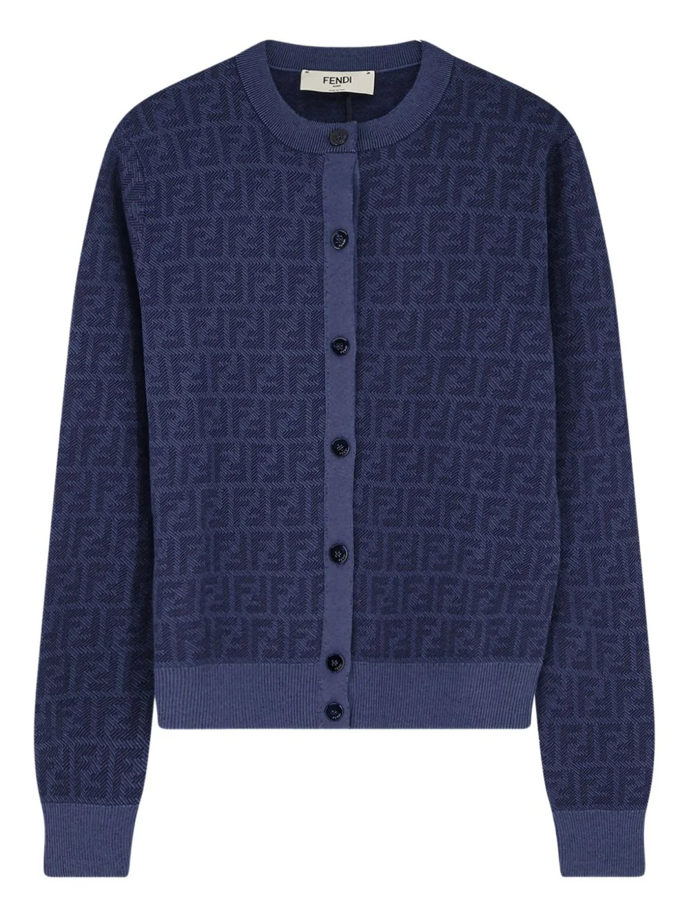 FF-pattern buttoned cardigan Highlights - Blue - Ff pattern - Round neck - Long sleeves - Front button fastening - Ribbed trim Made in Italy Composition Wool 100% Washing instructions Read Manufacturer Guidelines