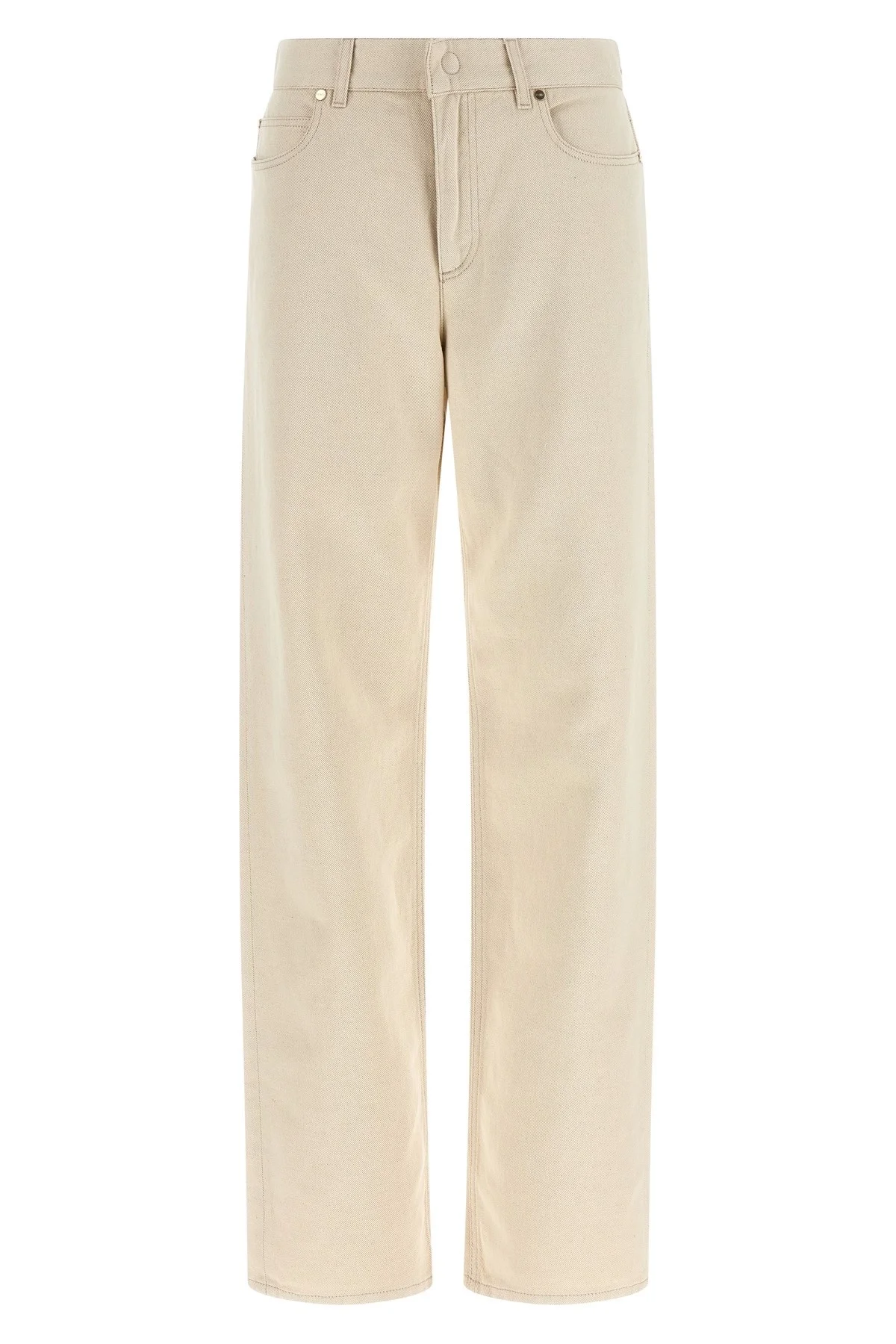 cod. FLP882AOHVF1W0T 'FF Reverse' garment-dyed cotton denim jeans with all-over FF print lining, high waist, wide straight leg, front zip and snap button closure, five pockets, back 'FF Selleria' logo tag, turn-up hem. Color: Beige Size & Fit: true to size fit Composition: 68% cotton, 32% linen Made in: Italy