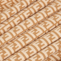 Scarf made of wool and cashmere yarn with an all-over camel jacquard FF motif. Embellished with Fendi Roma logo and fringes on the ends. Made in Italy Composition: 80% wool, 20% cashmere Product Code: FXT113AQCWF0QB8